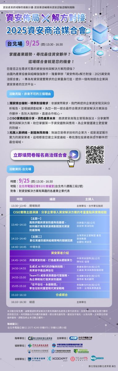 【2025 資安商洽媒合會】(活動詳細內容請參閱報名連結)