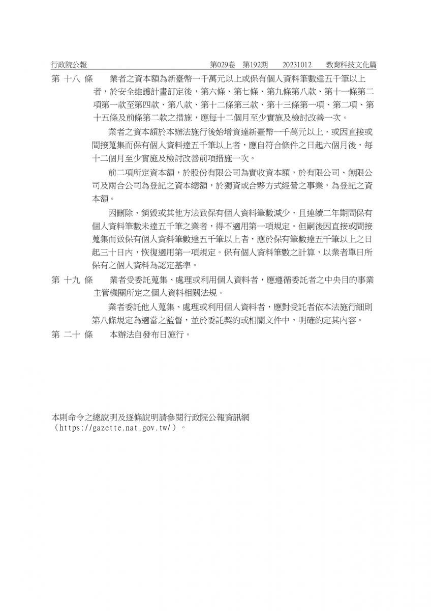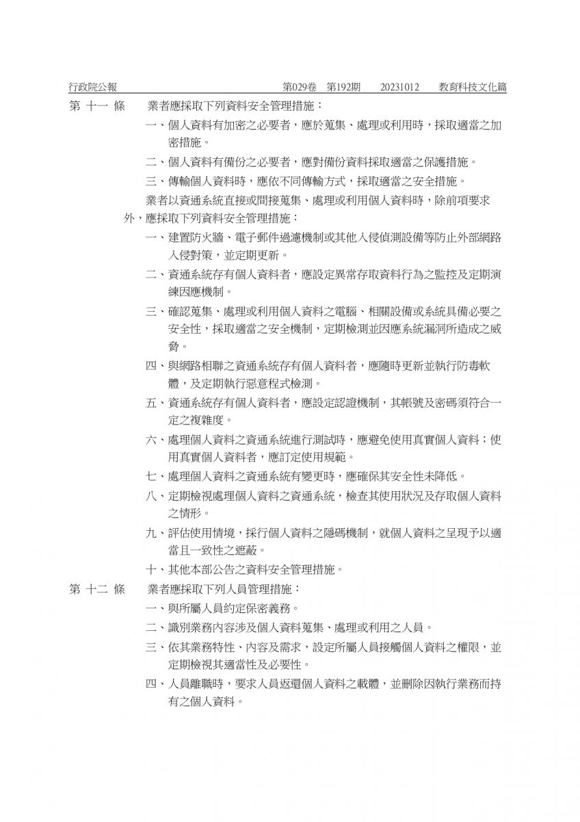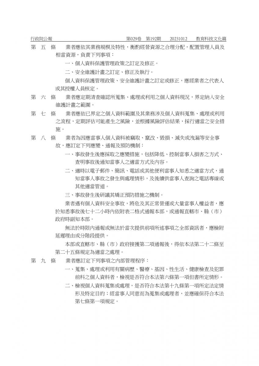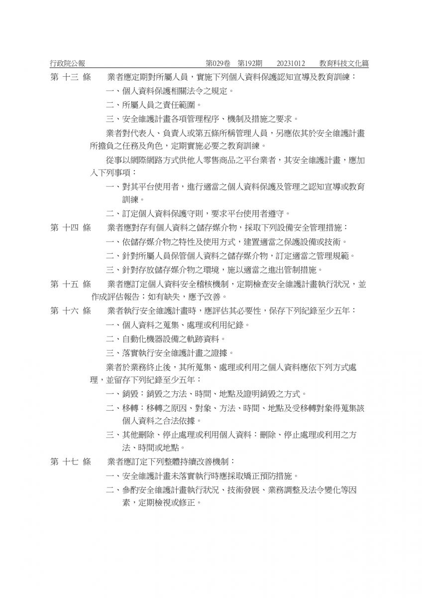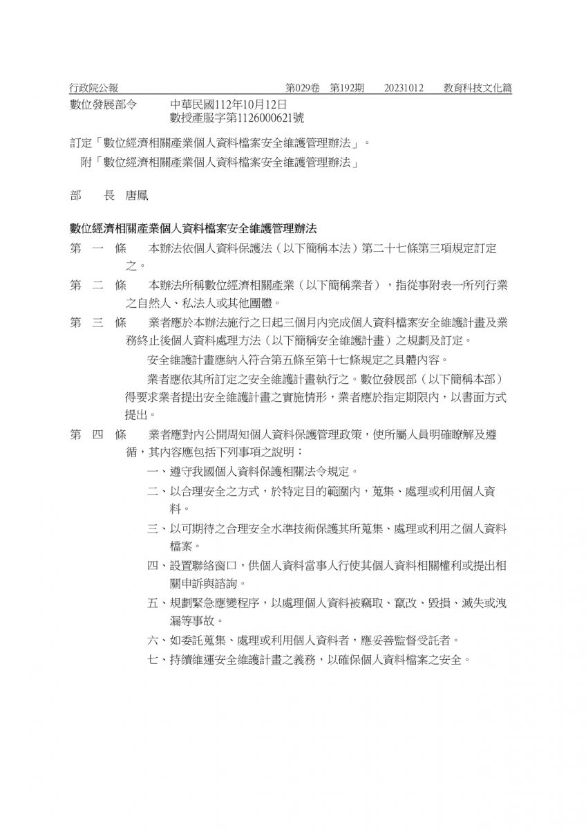 數發部已於112年10月12日發布「數位經濟相關產業個人資料檔案安全維護管理辦法」,內容請詳附件。
